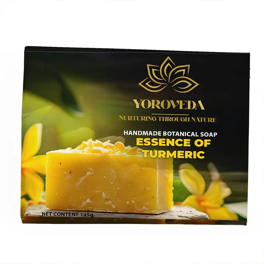 Experience the time-honored skincare benefits of Yoroveda Handmade Botanical Soap – Essence of Turmeric. Crafted with Ayurvedic wisdom, this handmade soap deeply purifies the skin while maintaining its natural moisture balance.